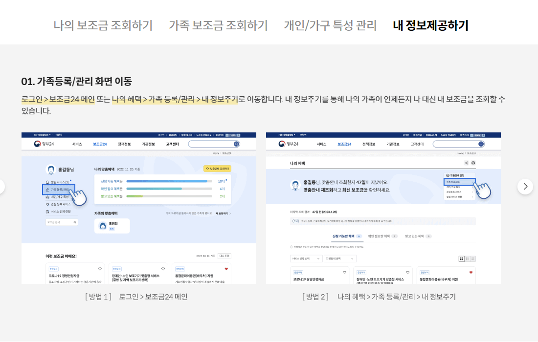 가족 보조금 조회하기