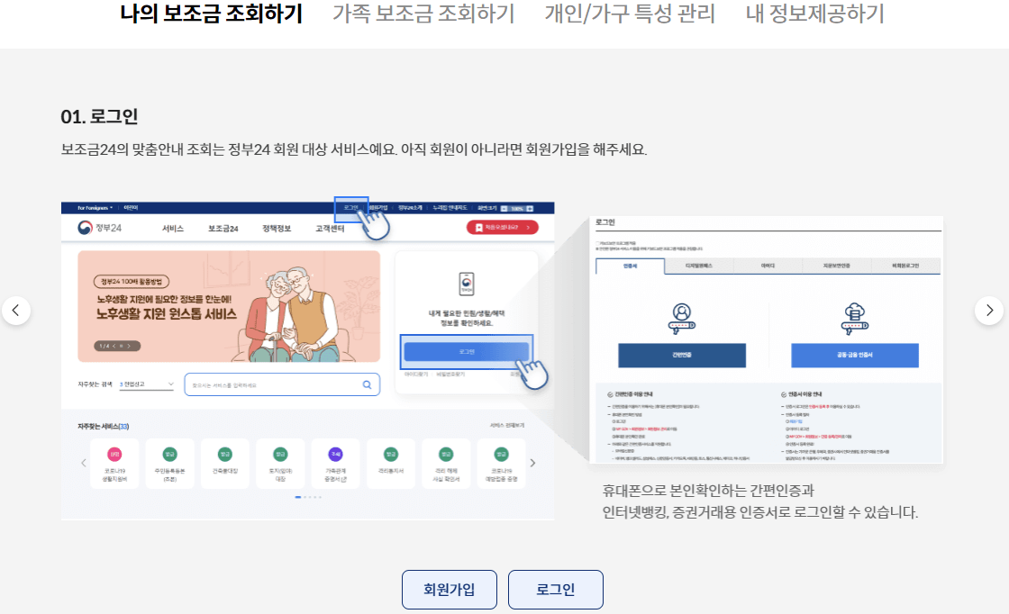 보조금 24의 맞춤안내 조회는 정부 24 회원 대상 서비스입니다. 아직 회원이 아니라면 회원가입 해주세요.