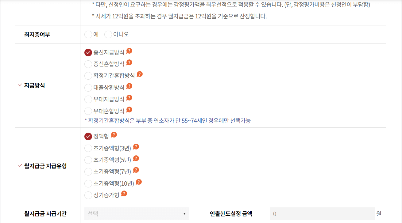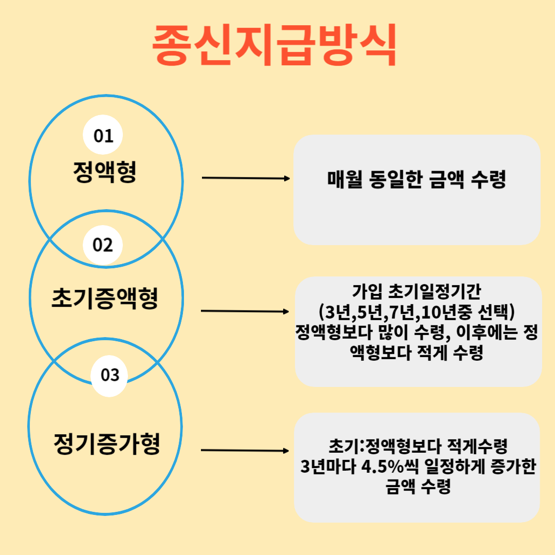 그리고 종신지급방식에 따라서도 금액이 달라집니다.(2023년3.1기준)