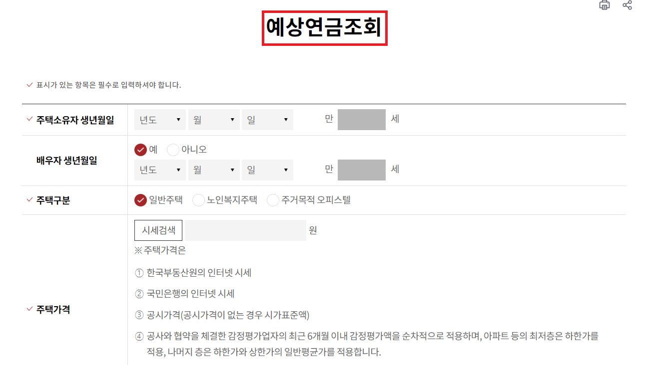 주택공사 홈페이지 접속하시면 예상 수령액 조회가 가능합니다.