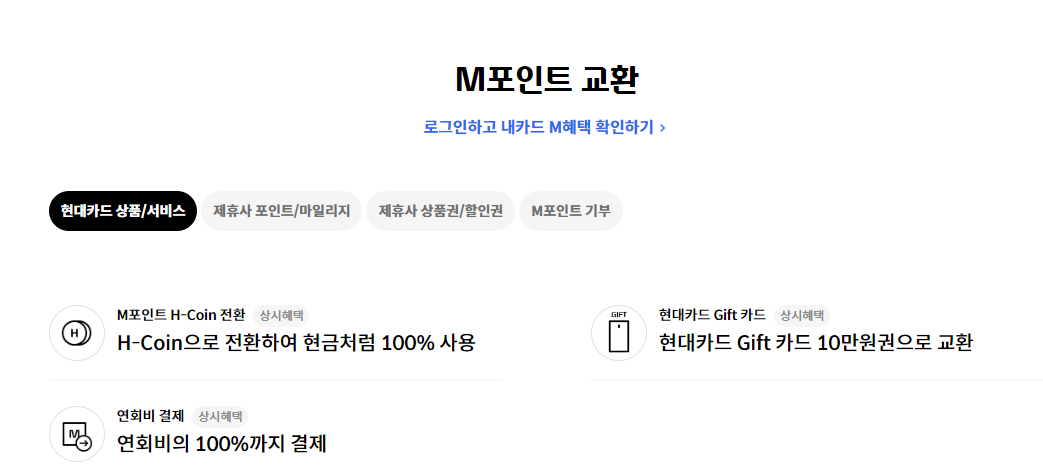 현대카드 M포인트는 제휴사 상품권과 할인쿠폰으로도 교환할 수 있습니다.